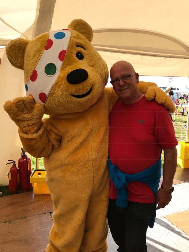 Getting a hug from Pudsey Bear
